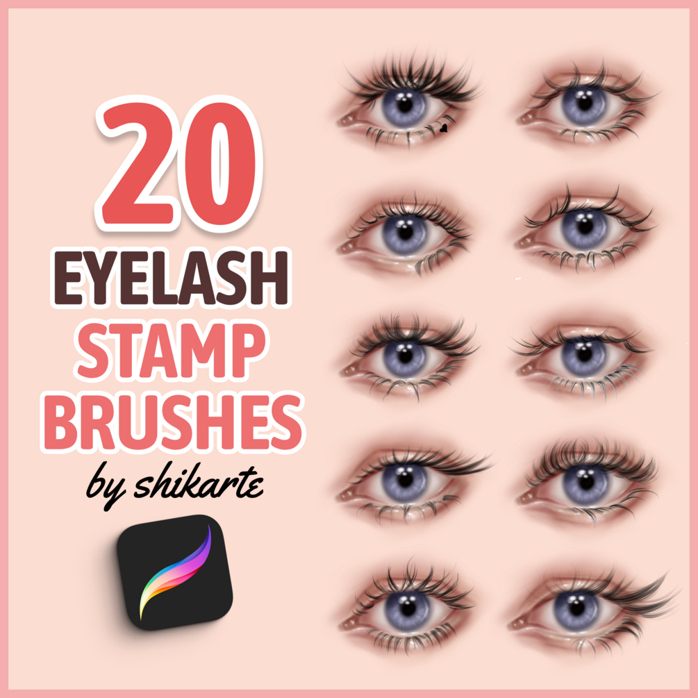 • 20 Procreate Eyelash Stamp Brushes (Upper & Lower Lashes) and Procreate Eyelash Stamp Brush Set of 4- To make your portrait painting process easier ✏️
