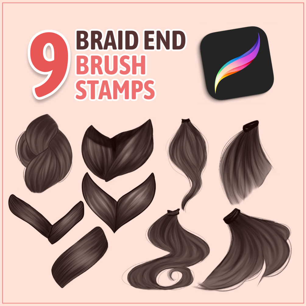 This brush set includes 5 realistic braid brushes to be used in any colour. This brush set also includes 4 braid tail stamp brushes along with 5 braid shape stamps to complete the whole braid look.