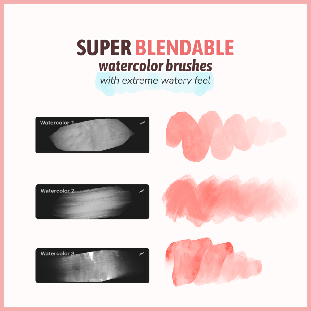 Crafted with precision to emulate real watercolor brushes, our meticulously designed tools ensure seamless usability. Whether you're a seasoned watercolor artist or just venturing into the realm, mastering these brushes will feel like second nature.