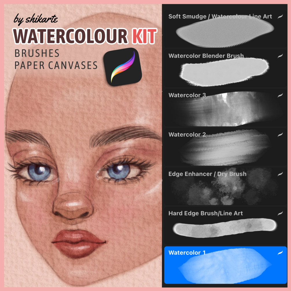 Procreate Watercolor Kit: Brushes+Paper Canvases